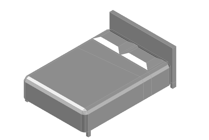 Double bed 3d details, front and top view elevation of a double bed with mattress is shown