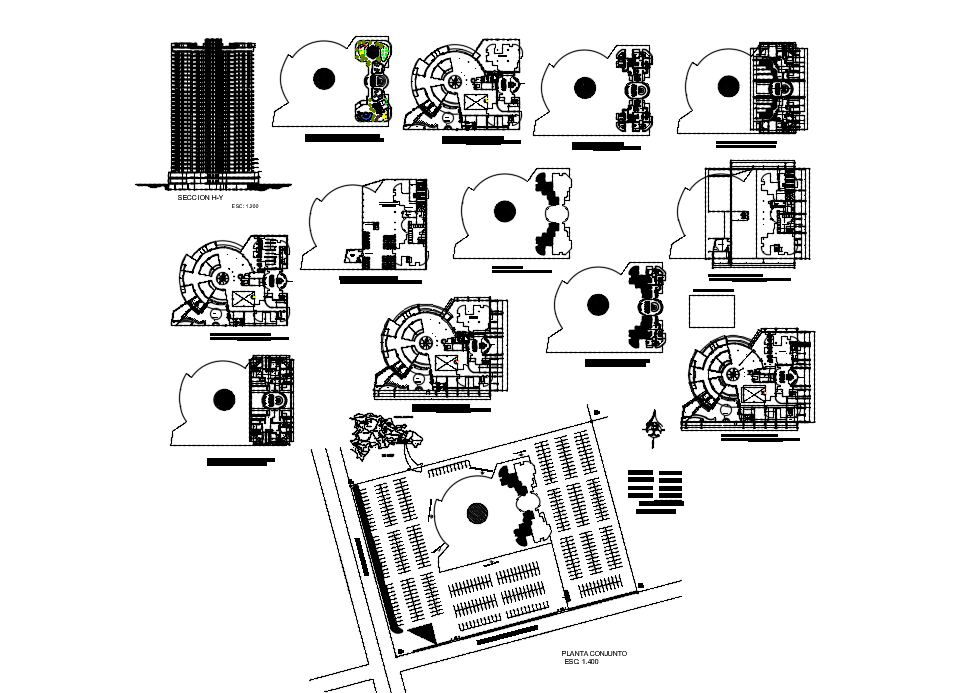 Residential And Commercial Tower layout plan dwg file. Architecture Design that includes front elevation, back elevation, wall construction, doors and window elevation, staircase elevation, column and beam details, view and much more in AutoCAD format.