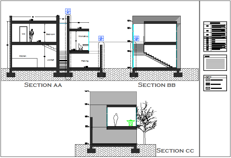 Section view of single apartment with different axis dwg file in section view with wall,wall support,balcony,stair,apartment area view with necessary detail ,floor level view with necessary dimension.