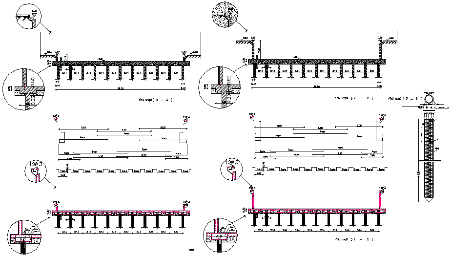 Pool civil work detail dwg file, including bolt nut detail, reinforcement detail, dimension detail, naming detail, etc.