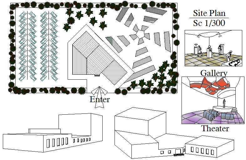 Section museum plan detail dwg file, including section A-A’ detail, section B-B’ detail, dimension detail, scale 1:100 detail, etc.