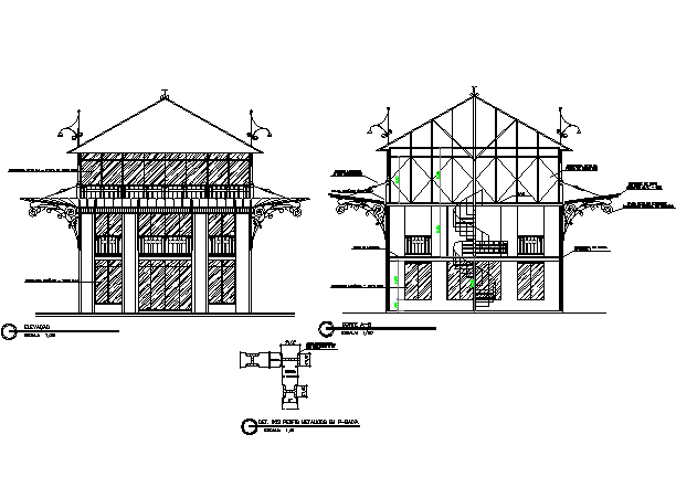 Elevation and section detail dwg file, including dimension detail, stair cutting detail, architect design detail, etc.