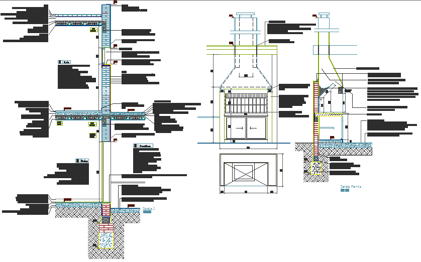Wall section detail dwg file, beam to wall connecting detail, naming detail, dimension detail, etc.