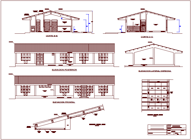 Elevation and different axis section view for rural medical area dwg file in elevation with view of floor,floor level,wall,door and window view and section view with floor,floor level,door,window and wall view with necessary dimension.