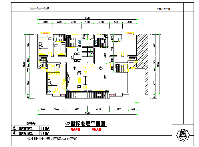 Residential standard floor plan in cad file, Three bedrooms, two living rooms and two bathrooms, Planning and Architectural Design Plan etc.
