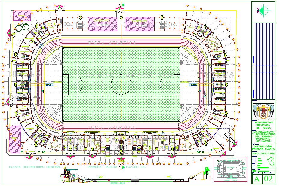 Modern Stadium Detail DWG File with Football Field and Seating Layout