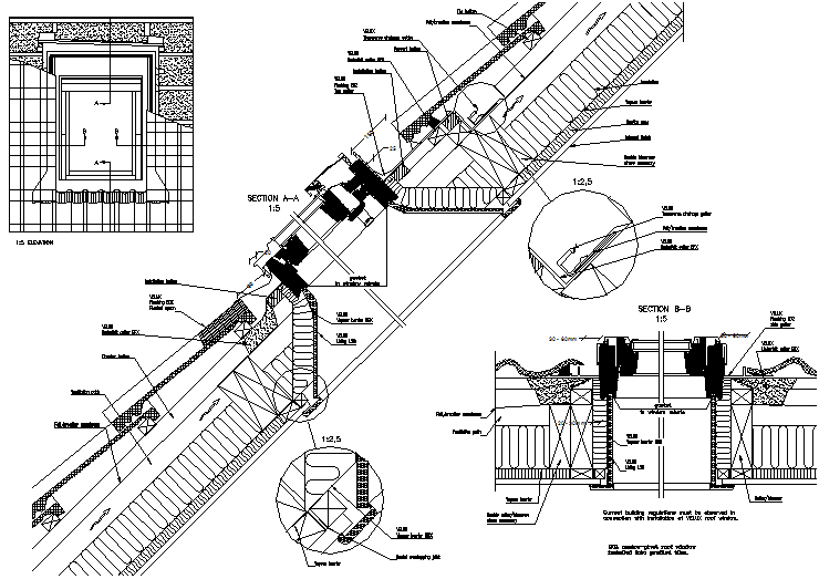 Roof light section detail dwg file, including plan, section and elevation detail, section line detail, dimension detail, naming detail, etc.