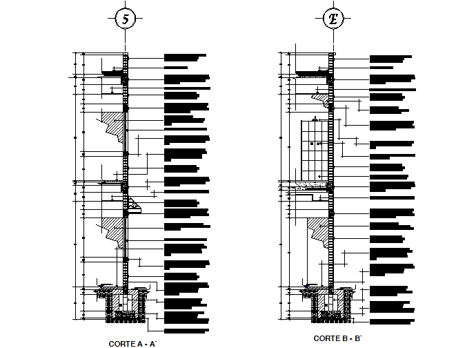 Wall section detail dwg file, including section A-A’ detail, section B-B’ detail, naming detail, dimension detail, a foundation to roof section detail, etc.