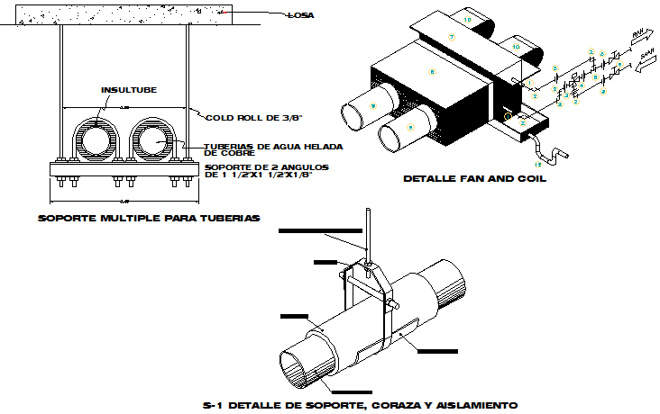 Details of support, heart and insulation dwg file, plan, elevation and section detail, naming detail, dimension detail, etc.