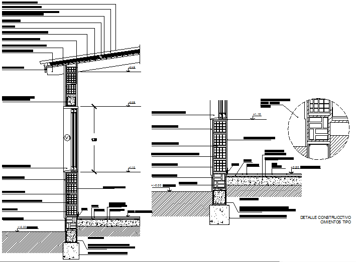 Wall section detail dwg file, including dimension detail, naming detail, roof section detail, concrete mortar detail, furniture detail with window detail, etc.