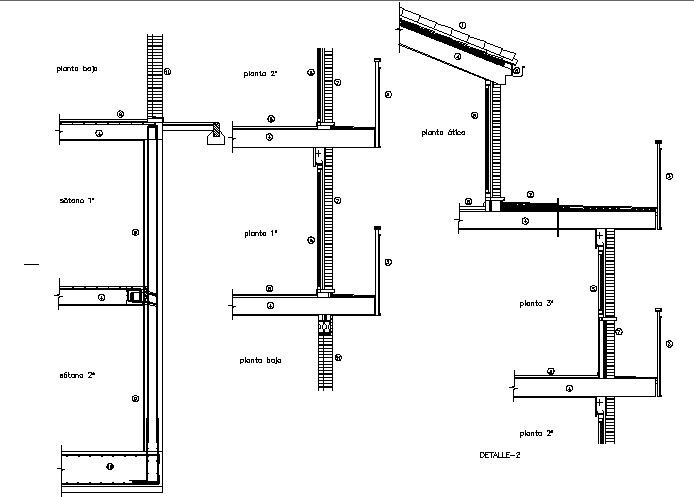 Wall section detail dwg file, including numbering detail, reinforcement detail, roof section detail, etc.