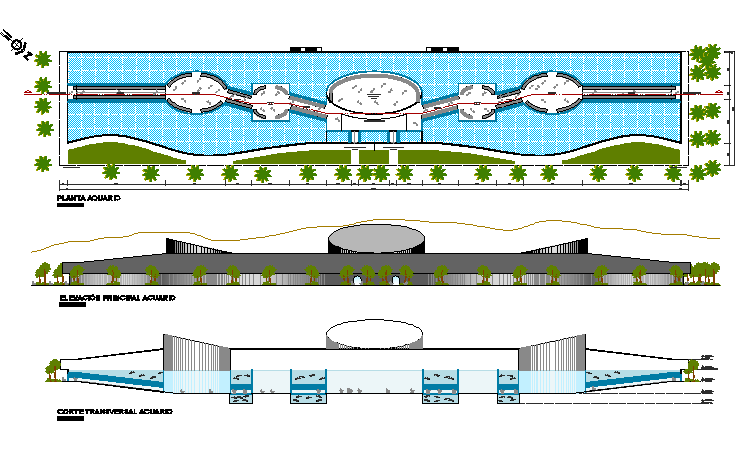 Acuario block detail dwg file, plan, section and elevation detail, dimension detail, naming detail, landscaping detail with plant and tree detail, etc.