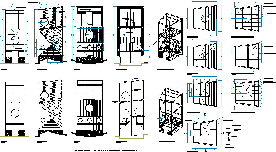 Vertical labyrinth development detail dwg file, with dimension detail, naming detail, plan, elevation and section detail, etc.