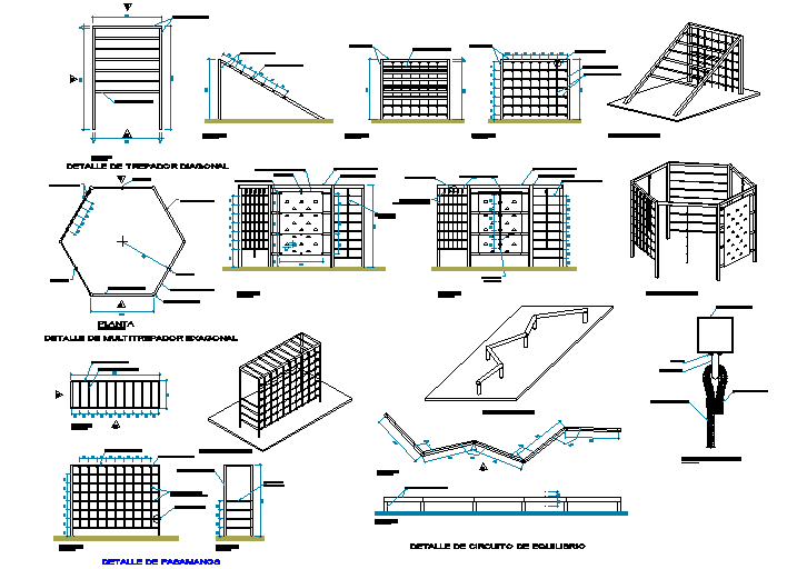 Detail of handrails and balance circuit detail dwg file