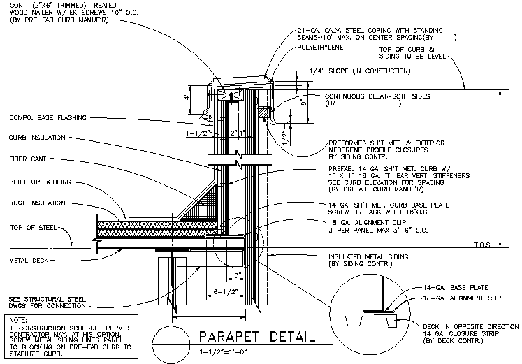 Parapet detail dwg file, section detail, scale 1’0” detail, naming detail, dimension detail, etc.