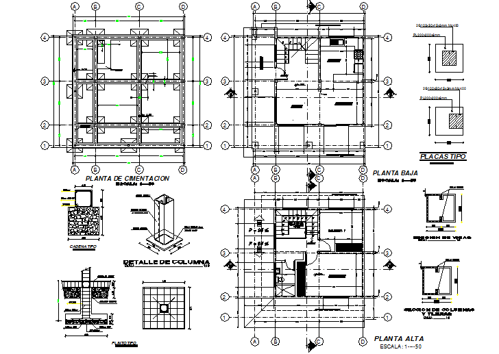 Foundation plan and section detail dwg file, centre line plan detail, dimension detail, naming detail, reinforcement detail, section line detail, etc.