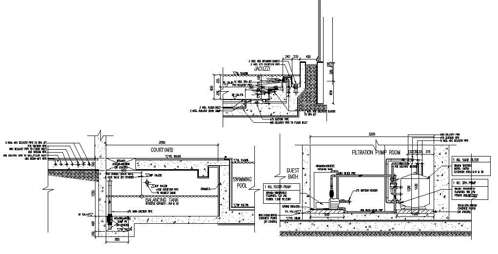 Pump swimming pool section detail dwg file, with stair section detail, dimension detail, naming detail, etc.