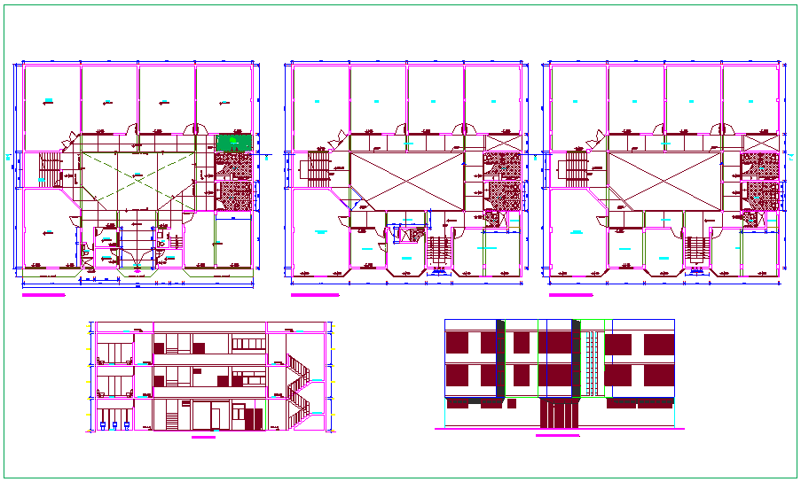 Los angles collage floor plan,elevation and section view dwg file in floor plan with view of first floor plan with area view,entry way,deposit and control area and garden,