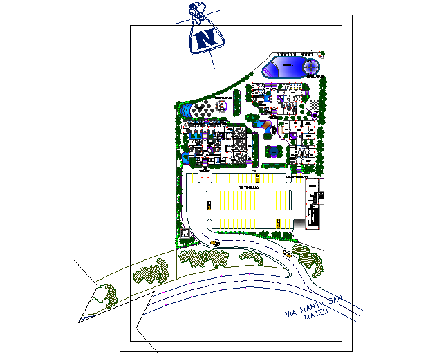 Layout Beauty clinic section detail dwg file, including north direction detail, landscaping detail with plant and tree detail, etc.