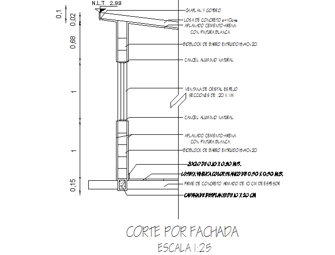 Wall section detail dwg file, including dimension detail, naming detail, roof section detail, etc.