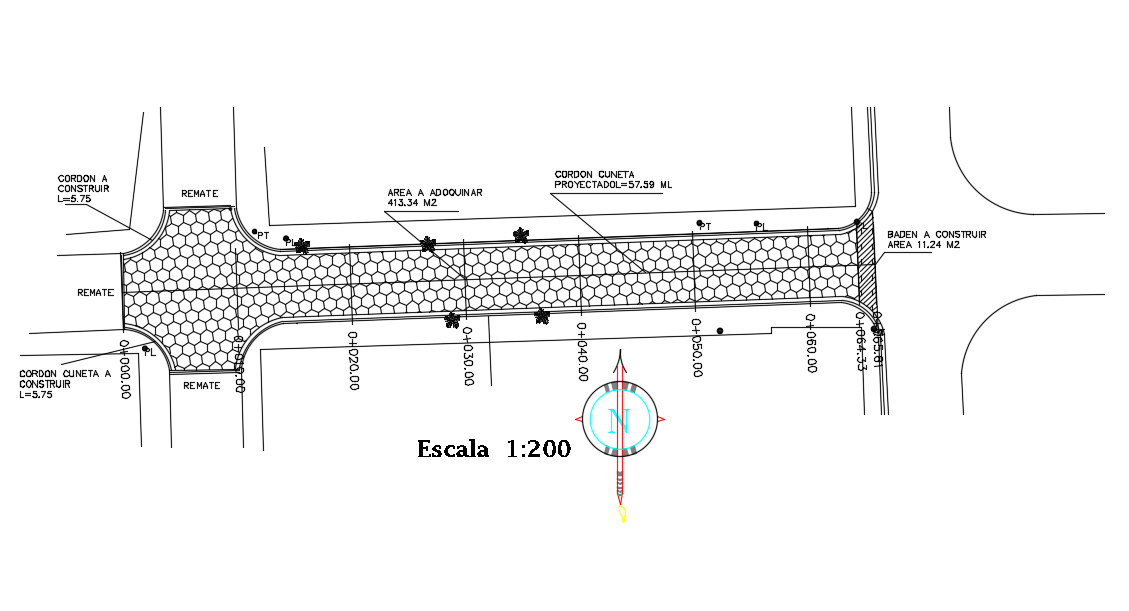 Cobblestones street stretch dwg file. Drawing labels, details, and other text information extracted from the CAD file