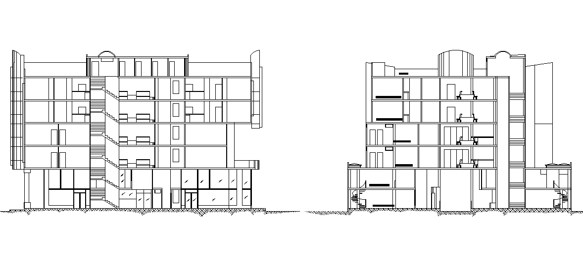 Elevation of a complex dwg file, here there is front elevation of a complex, staircase details, in auto cad format