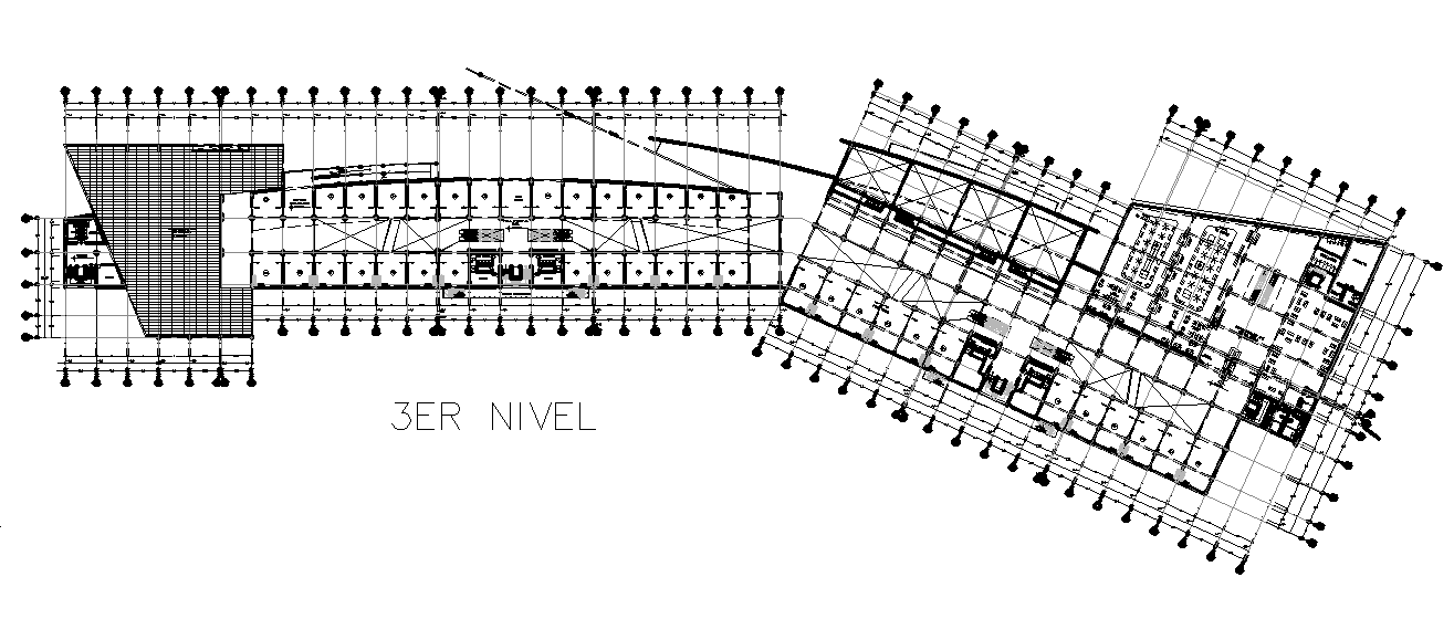 Resort complex plan dwg file, complete architectural detail of a restaurant is shown, furniture detailing