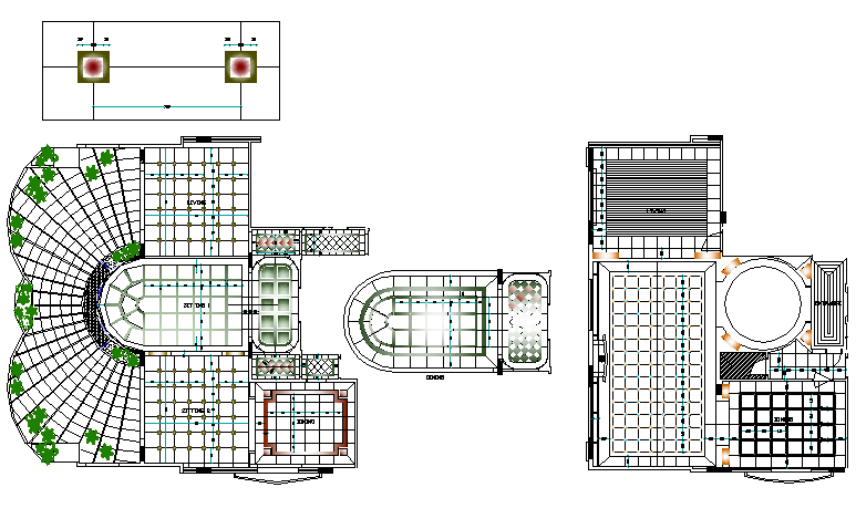 Landscaping with flooring plan detail dwg file, including dimension detail, naming detail, landscaping detail with tree and plant detail, etc.