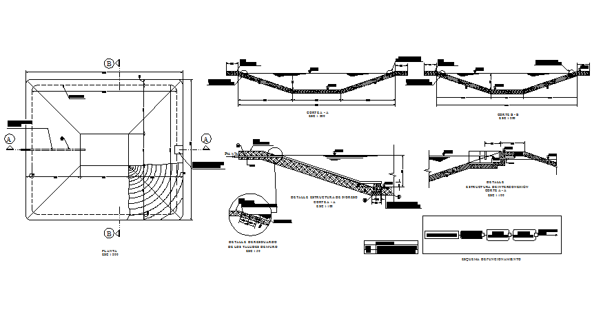 Anaerobic lagoon detail dwg file, including plan and section detail, dimension detail, naming detail, etc.