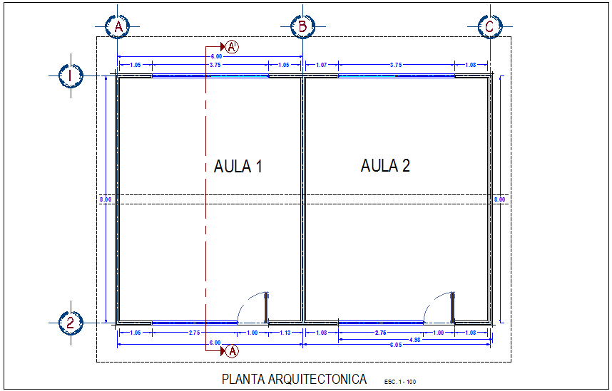 Project of classroom with architectural plan dwg file