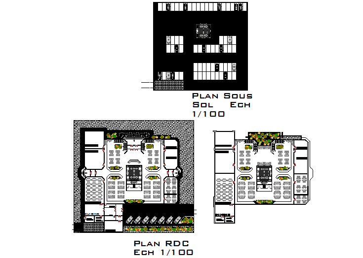 Tour colonic plan detail dwg file, with scale 1:100 detail, landscaping detail with plant and tree detail, furniture detail with chair, table, door and window detail, etc.