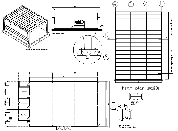 Beam plan and 3 D view detail dwg file, including dimension detail, naming detail, etc.