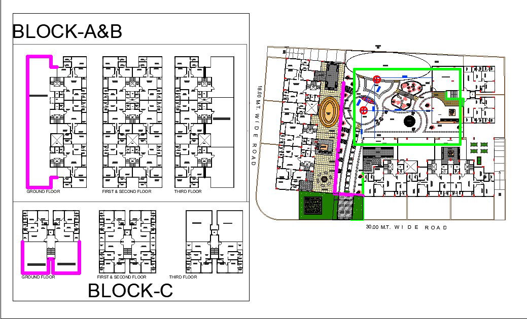 Autocad Drawing file of the G+3 Apartment House plan detailed layout is given in this DWG file. On the ground floor, three units are available. Each Unit having three bedrooms. Master bedroom with attached toilet, children's bedroom with attached toilet, Guest bedroom, kitchen, Dining near the kitchen, Wash area, storeroom, Drawing room, and balcony is available.