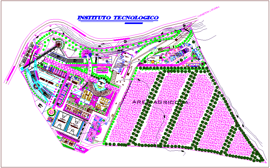 Landscape view of technological educational institute dwg file in landscape view with view of garden area view with walking way and main entry view,parking area,area of