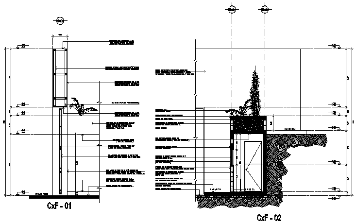 Wall section detail dwg file, with dimension detail, naming detail, door detail, etc.