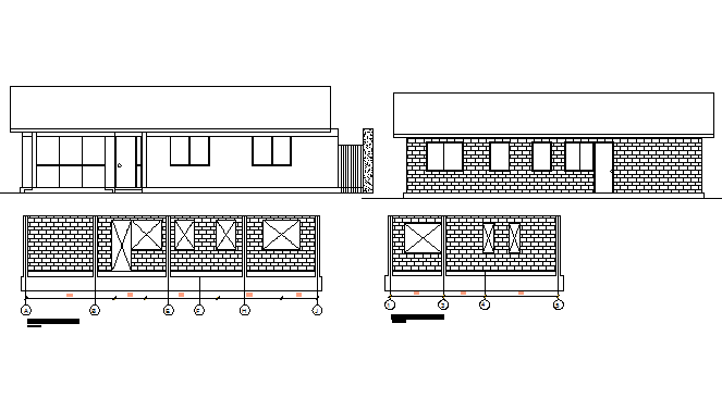 Elevation house detail dwg file, with front elevation detail, left elevation detail, right elevation detail, back elevation detail, dimension detail, naming detail, etc.