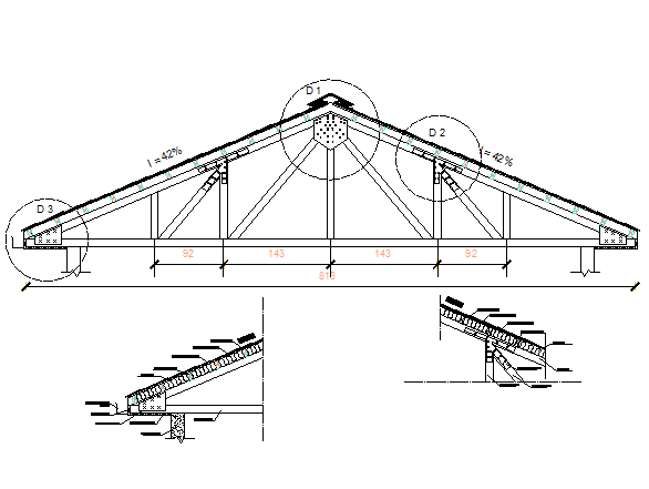 King post section detail dwg file, with truss detail, dimension detail, naming detail, reinforcement detail, etc.
