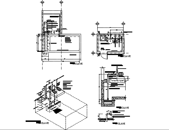 Plants sections isometrics detail of hydro pneumatic room dwg file