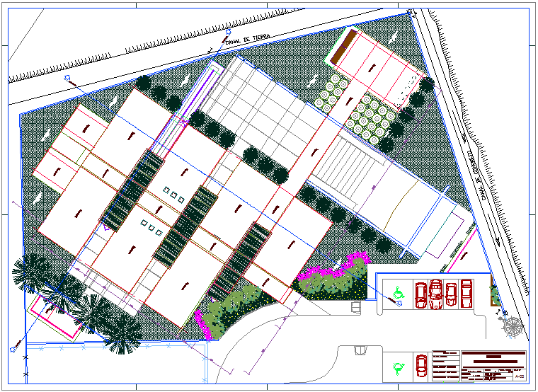 Ceiling plan of Madrid school dwg file in plan with view of area view with wall view,parking and floor area view with wall support and tree view with necessary dimension.