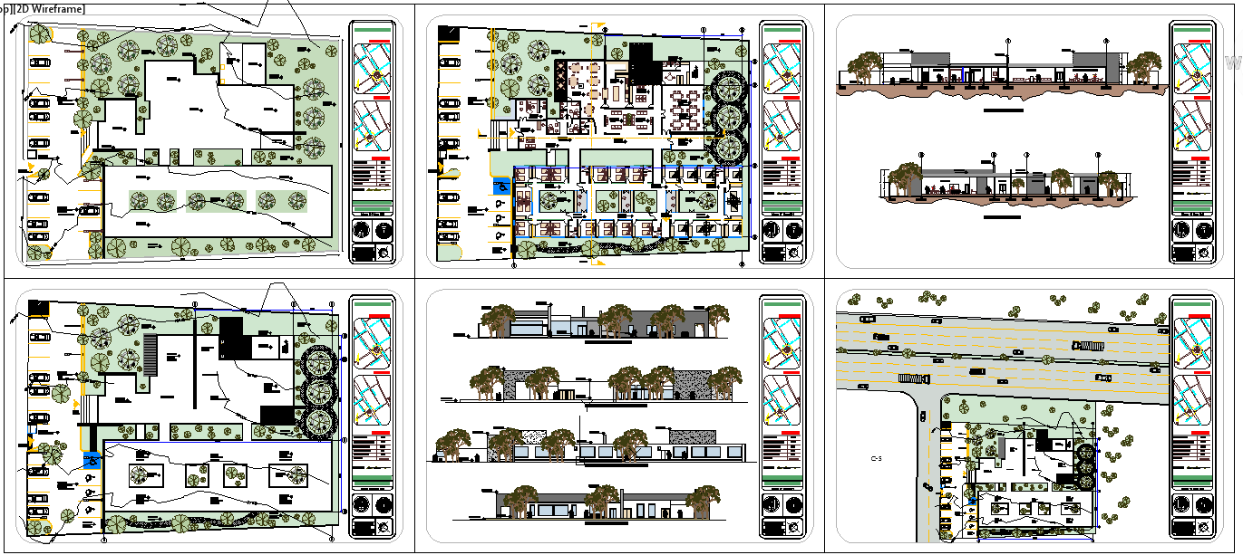 This Modern Hotel Design DWG layout showcases an innovative architectural plan featuring detailed floor plans, landscape zones, parking areas, and elevations. The drawing provides a functional layout that ensures smooth guest circulation, operational efficiency, and an appealing exterior aesthetic. Designed for architects, civil engineers, and designers, this plan includes modern hospitality spaces such as guest rooms, lobby, dining areas, service rooms, and open green courtyards for natural light and ventilation.
