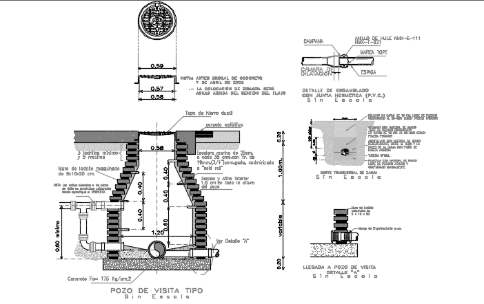 Type well visitation detail dwg file, with dimension detail, naming detail, plan and section detail, etc.