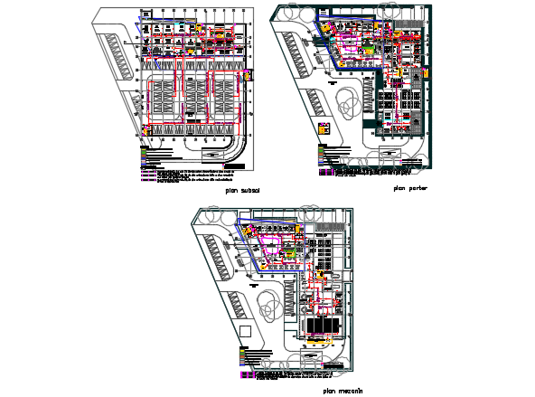 Basement floor to top floor plan detail dwg file, including car parking detail, center line plan detail, dimension detail, naming detail, etc.