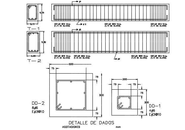 Detail of column dwg file, with dimension detail, naming detail, plan and section detail, reinforcement detail, etc.