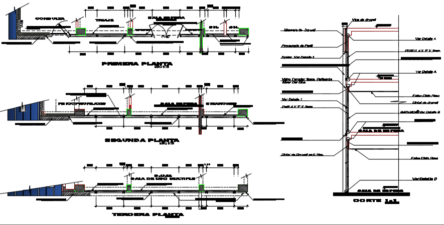 Wall section detail dwg file, dimension detail, naming detail, etc.