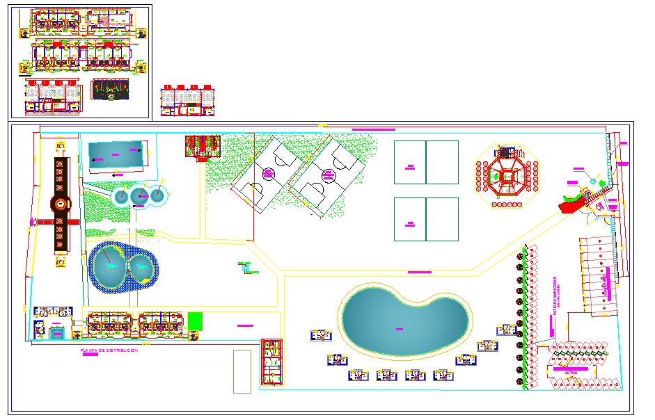 Club House Project DWG Plan with Sports Area and Swimming Pool Design