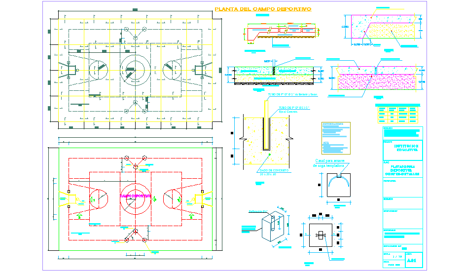 The DWG drawing provides clear section views and construction details, helping designers ensure proper drainage, durability, and safety standards for the entire facility. The layout demonstrates a well-organized plan suited for basketball, volleyball, or multipurpose sports courts. This drawing also emphasizes effective use of space, structural alignment, and accessibility for both players and spectators. It serves as an excellent design reference for institutions, schools, and municipal projects seeking efficient and visually balanced sports architecture