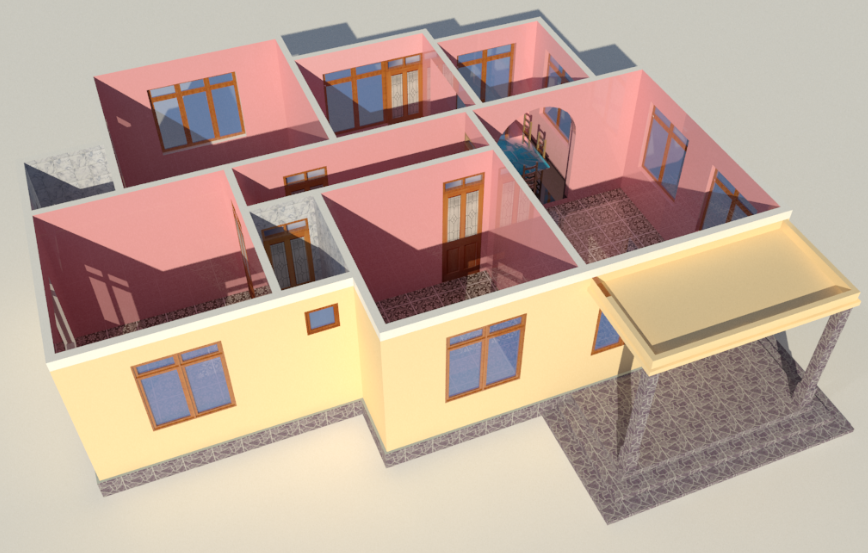 Open 3 D view detail dwg file, including column detail, flooring detail, furniture detail with door and window detail, etc.