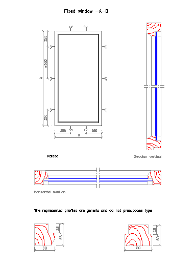 Fixed Window dwd file,Plan,Elevation,Section Details,Dimentions Details