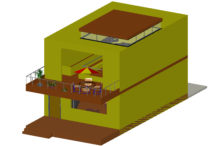 3 D house kitchen detail dwg file, with furniture detail with chair, table, door and window detail, etc.