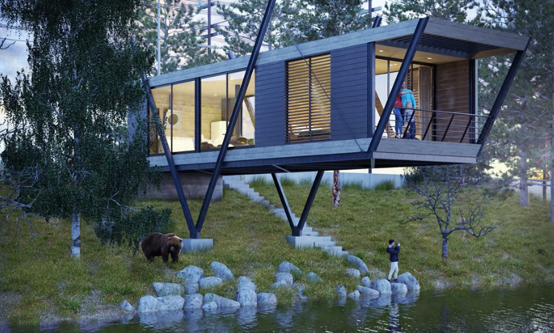 Cottage in lake 3 D house detail dwg file